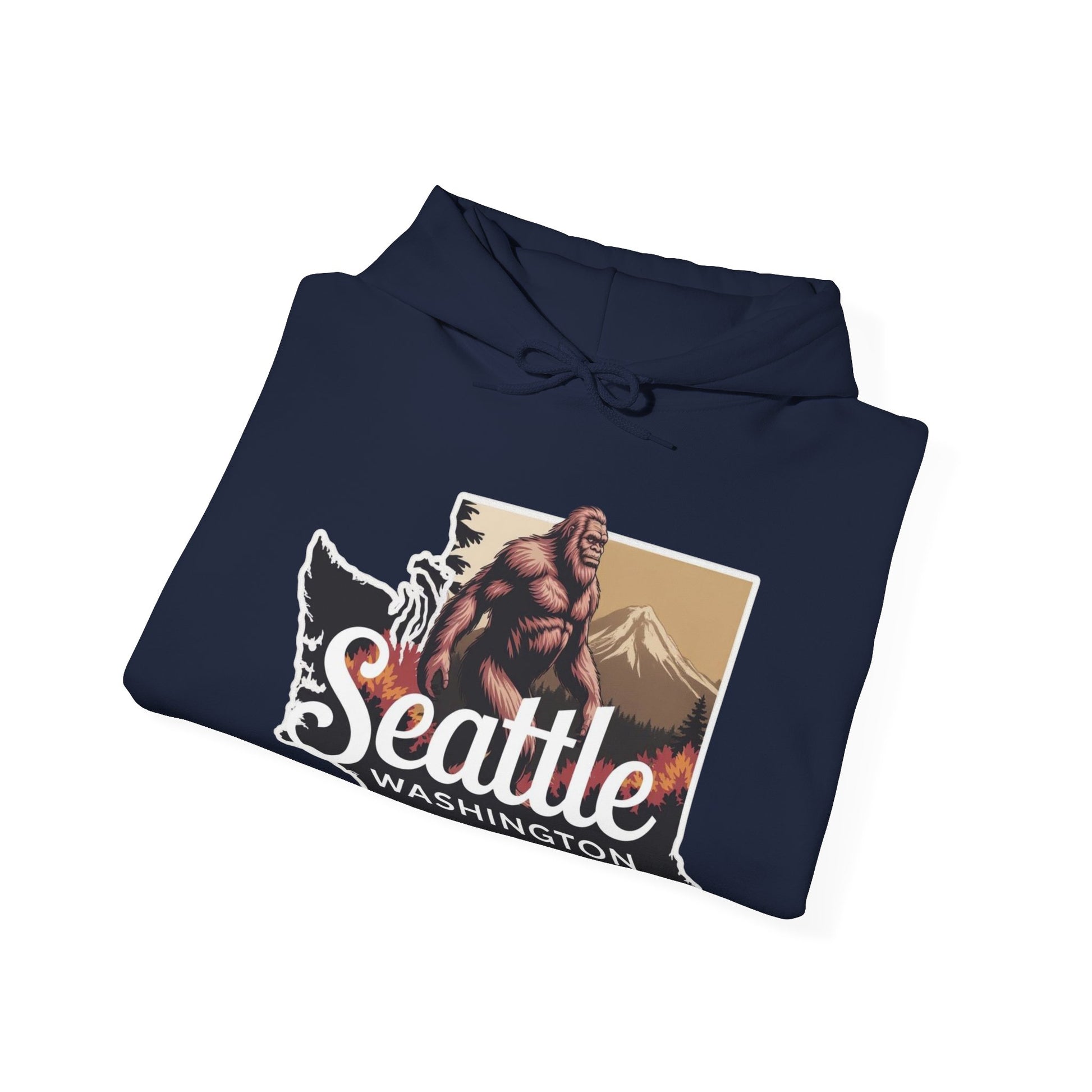 Cozy up in folklore and Northwest pride. This sweatshirt features a bold and mystical design inspired by the Pacific Northwest’s most legendary creature—Bigfoot—set against a scenic silhouette of Mt. Rainier and the tranquil wilderness of Washington State. Shaped like the state itself and stamped with “Seattle, WA,” this artwork celebrates everything wild, whimsical, and wonderfully local. Whether you're exploring trails or sipping coffee downtown, this wearable tribute is perfect for locals, adventure seekers, and believers alike. Each design is created with love and nostalgia—as someone who grew up in the foothills of Mt. Rainier, it’s a privilege to share her beauty (and mystery!) with you. This unisex heavy blend hooded sweatshirt is perfect for those who seek warmth and style. With a cozy kangaroo pouch pocket, it keeps your hands warm while adding a touch of casual charm. The adjustable drawstring hood offers a customizable fit, making it ideal for various weather conditions. Made from a durable 50% cotton and 50% polyester blend, this sweatshirt not only feels great but is also resilient against wear and tear. Whether you're lounging at home, running errands, or enjoying outdoor adventures, this hoodie fits seamlessly into your life. Ideal for anyone who appreciates comfort and unique style, it's a fantastic gift for holidays, birthdays, and casual get-togethers. Embrace a laid-back vibe with this must-have piece, suitable for both men and women.