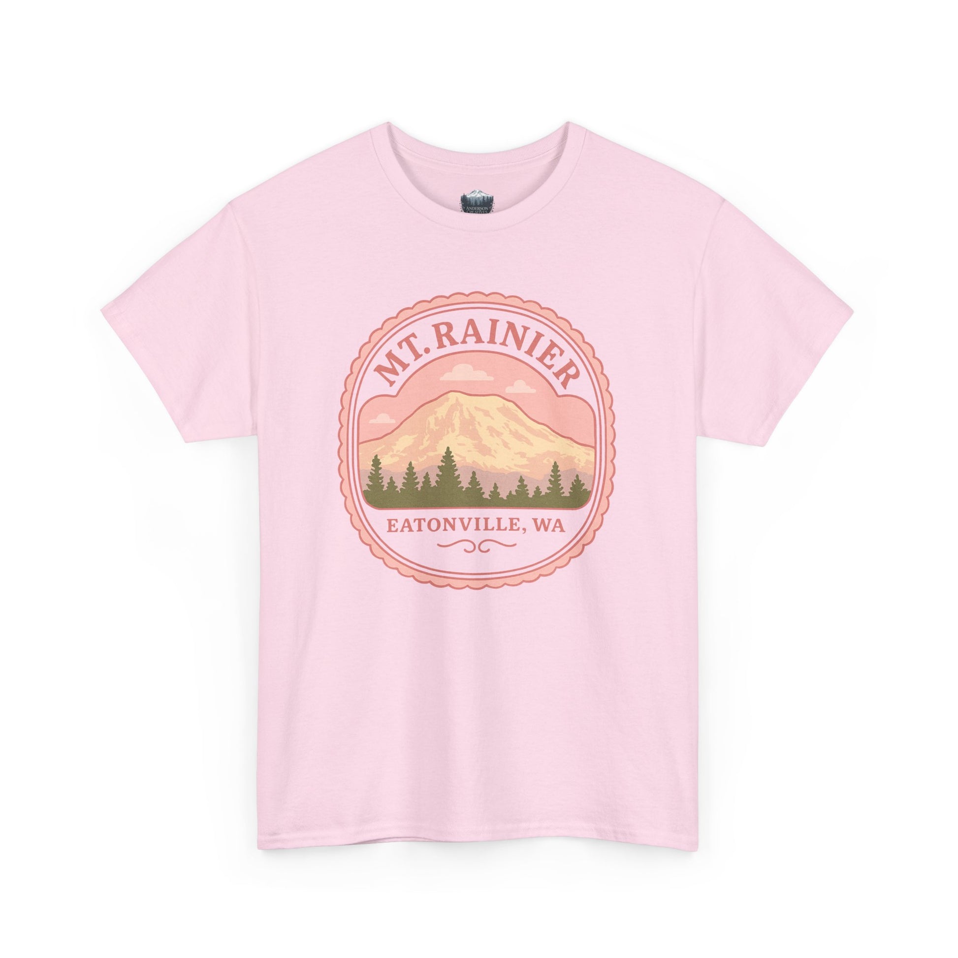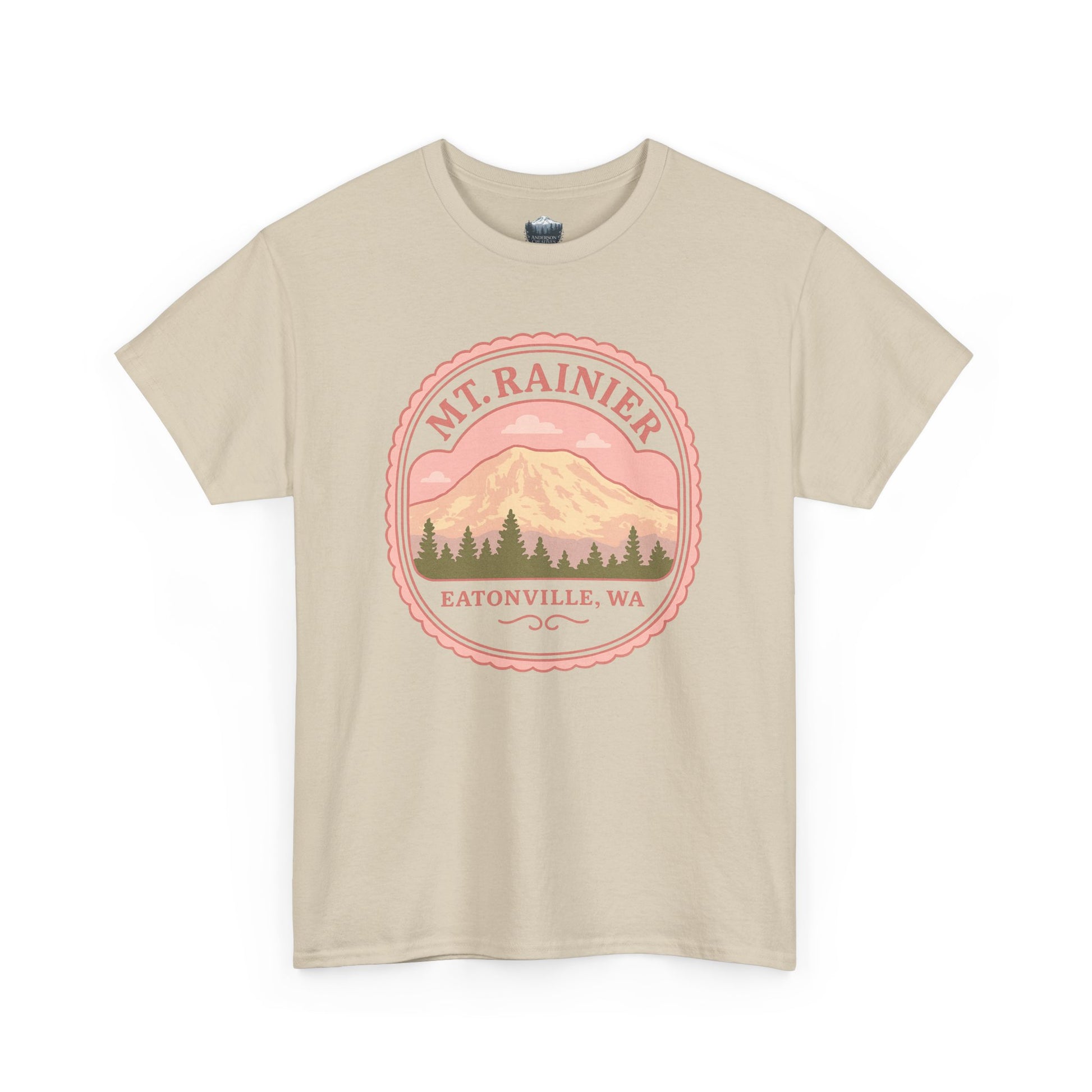 Coquette inspired Mt Rainier Eatonville Designed T-shirt gives off a vintage, charming vibe perfect for casual wear or special occasions. This tee is relevant to those who appreciate unique, artistic designs and enjoy adding a touch of creativity to their wardrobe. Perfect for outdoor adventures, art enthusiasts, and nature lovers.