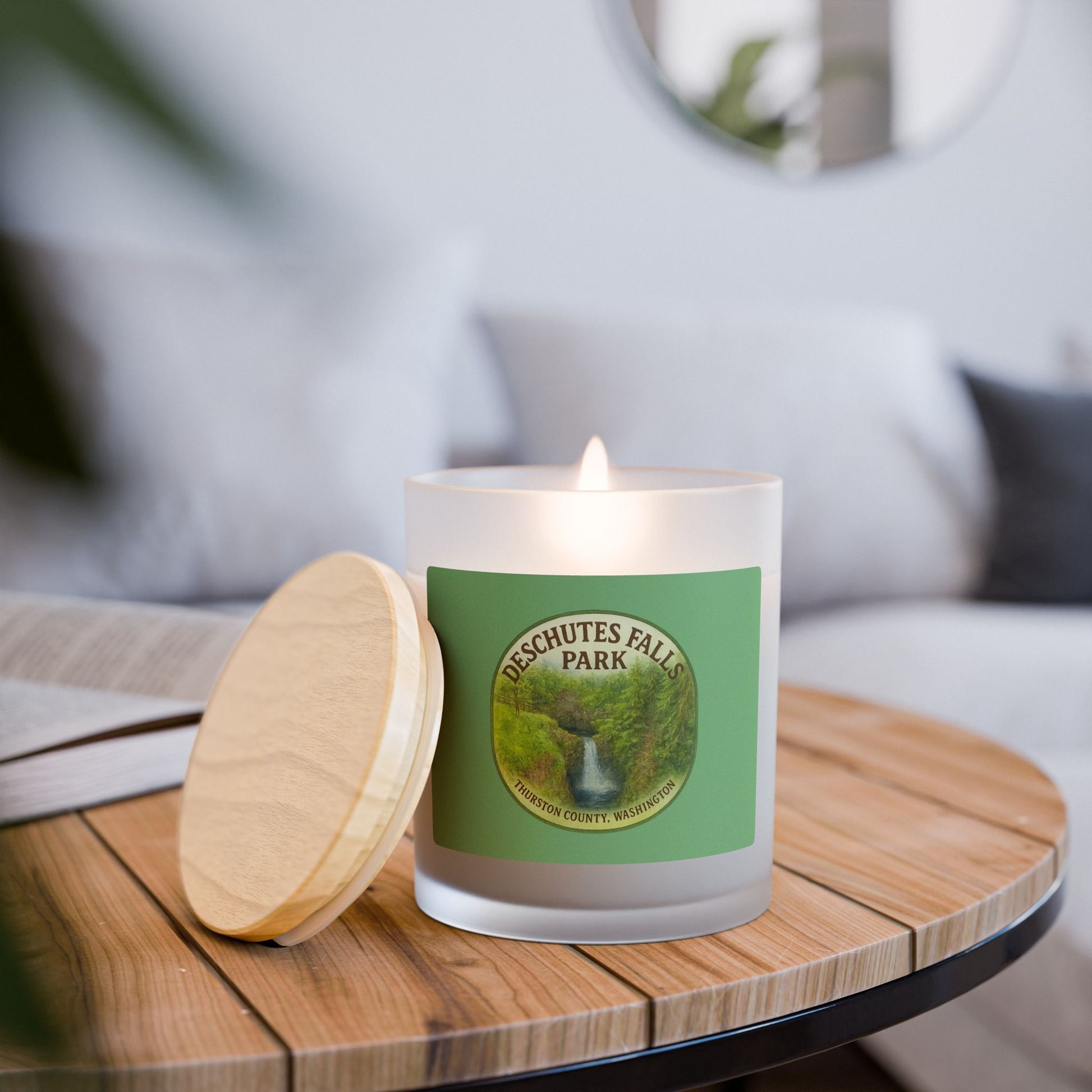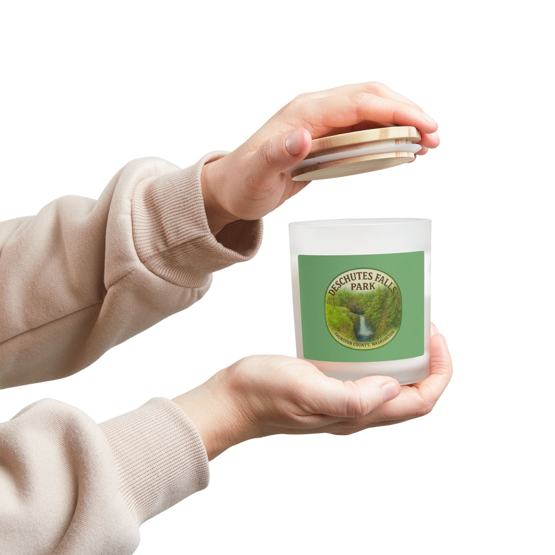Deschutes Falls Park - Thurston County, Washington Frosted Glass Candle