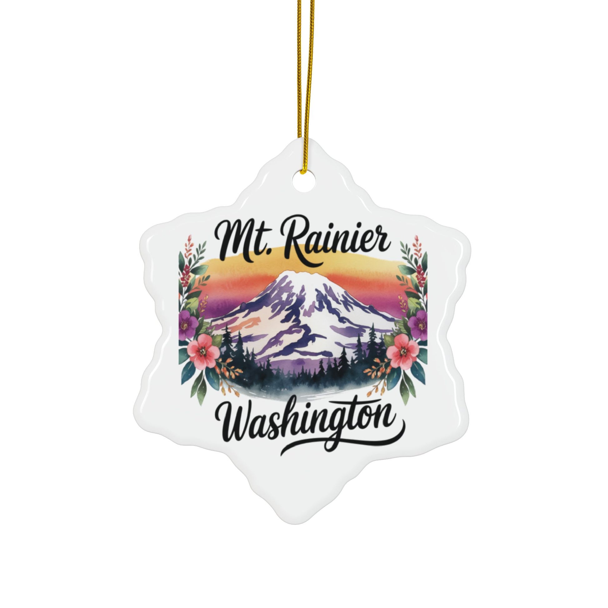 Bring the breathtaking beauty of the Pacific Northwest to your holiday decor with this unique Mt. Rainier ceramic ornament. Featuring a unique design of Mt. Rainier at sunset, this piece captures the mountain’s iconic silhouette framed by vibrant skies and blooming wildflowers — a true celebration of Washington’s natural wonder.