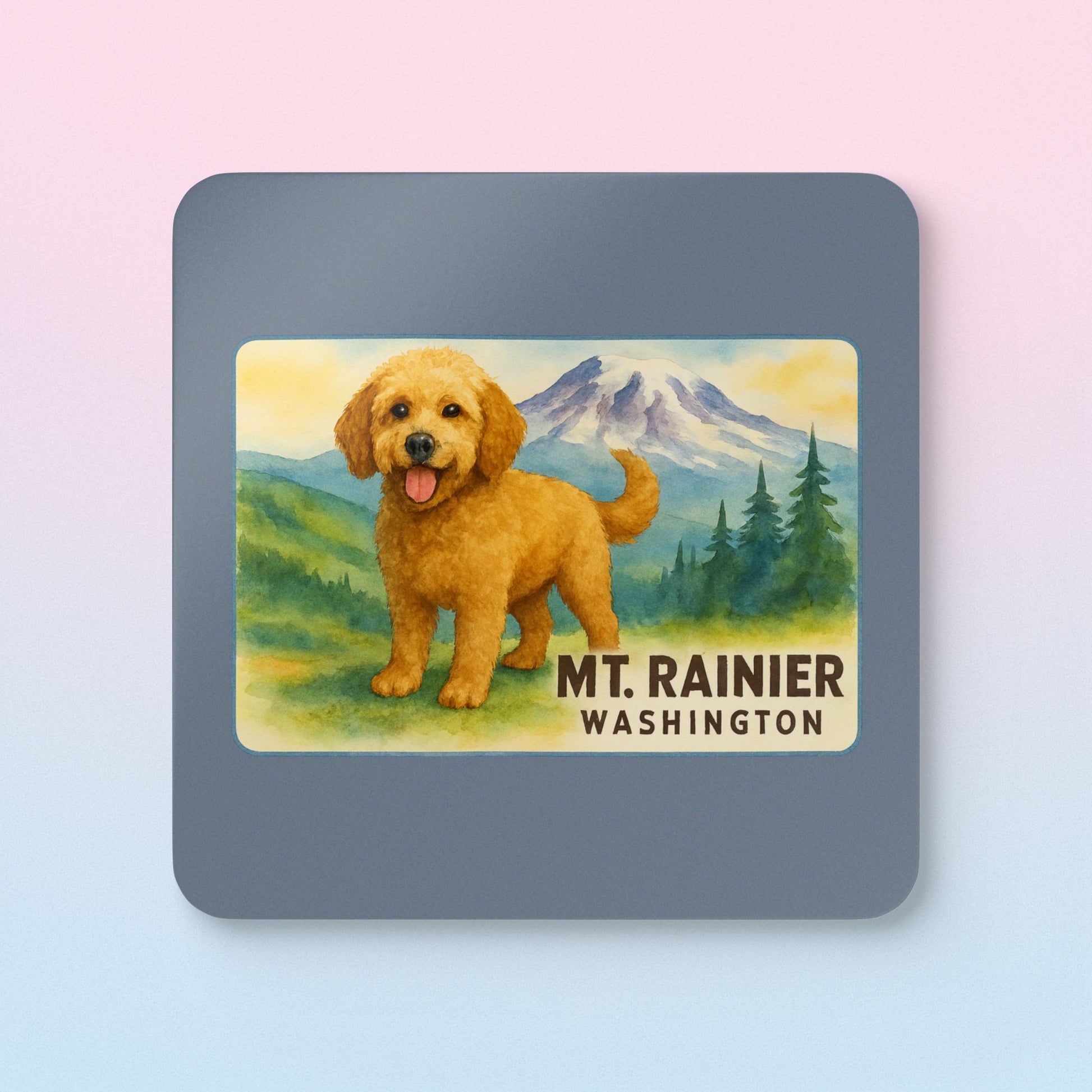 Mt. Rainier - Washington Golden Doodle Coaster Set