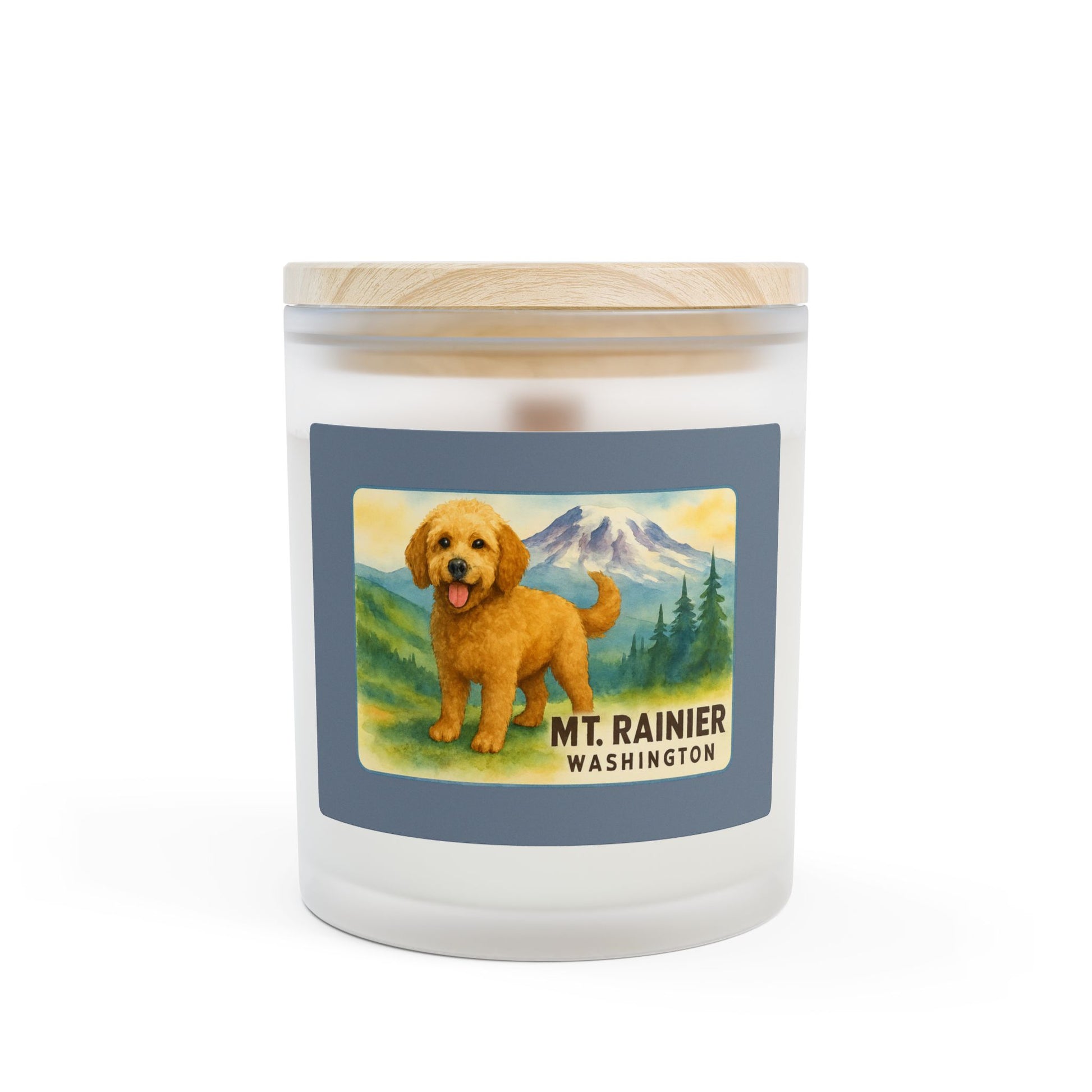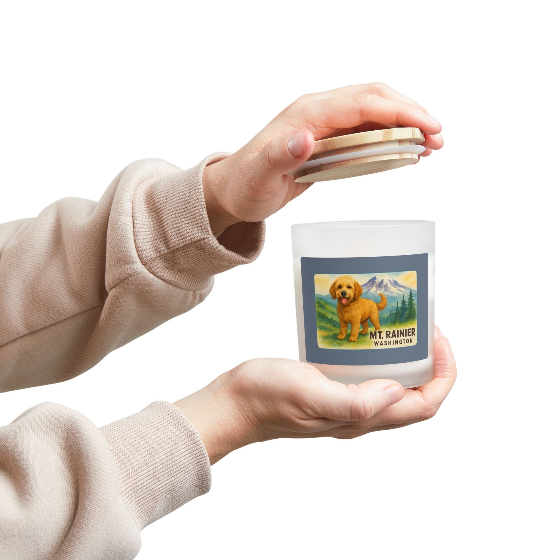 Mt. Rainier - Washington Golden Doodle Frosted Glass Candle